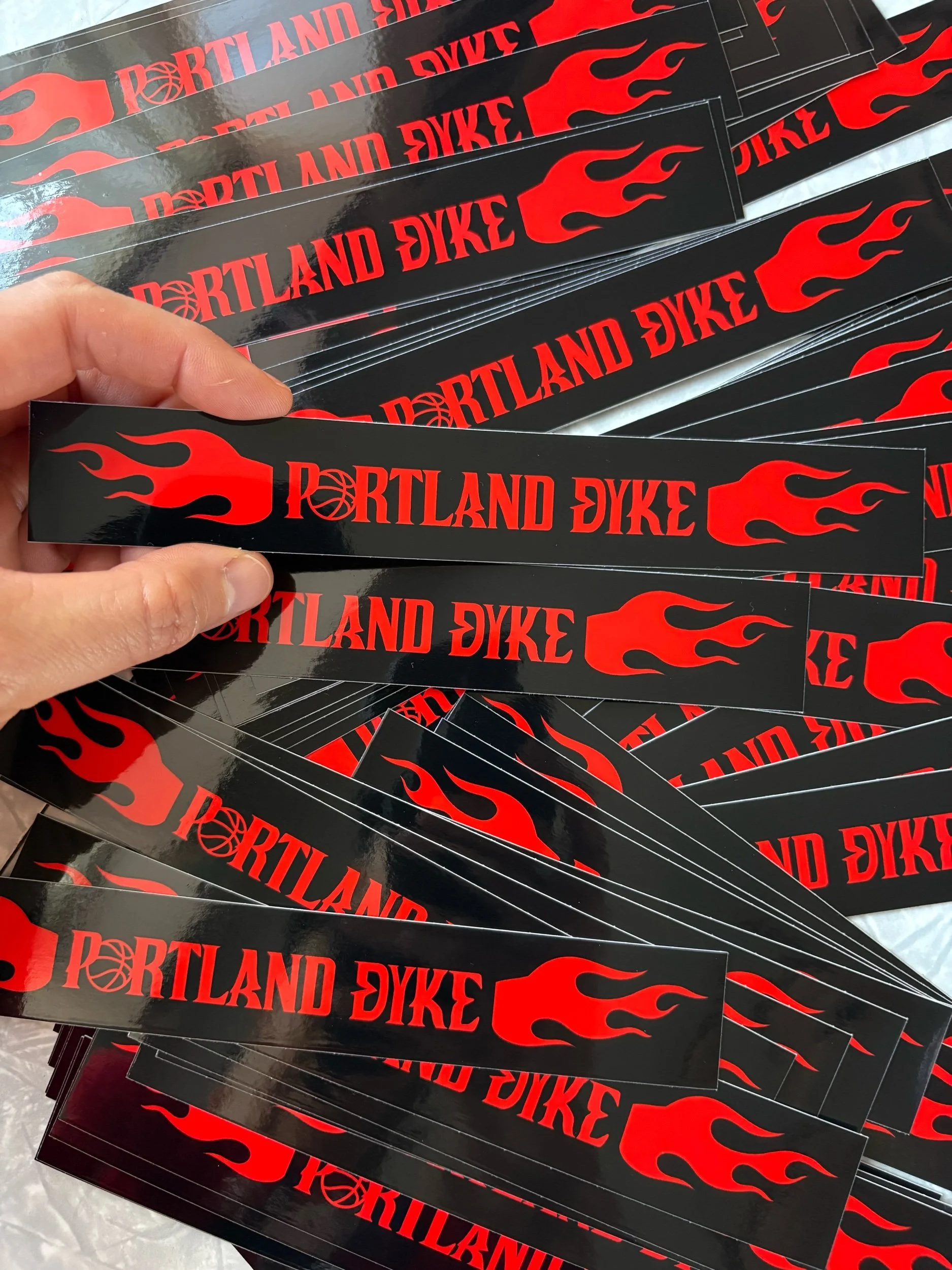 This design features Portland Dyke framed by flames, inspired by the iconic energy of the Portland Fire and made in honor of the queer players and fans who shape the game